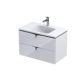 Nawet na stosunkowo małej powierzchni można stworzyć funkcjonalną garderobę z wanną wolnostojącą, dużym lustrem i innymi akcesoriami. Centralnym punktem jest szafka łazienkowa z blatem i designerskim lustrem. Zastosowano tutaj kolory, które tworzą ciekawy kontrast, ale wzajemnie się uzupełniają. Dzięki temu pomieszczenie wydaje się większe i jaśniejsze. Prostym dodatkiem jest biała i złota armatura łazienkowa.