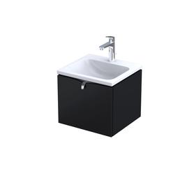 W tej łazience inspirację zaczerpnięto z kamienia występującego w naturze, a dokładnie z onyksu. W ten sposób można było uzyskać w łazience ciekawy efekt. Szare płytki ścienne tworzą efekt 3D i sprawiają, że łazienka wydaje się większa. Kolory dobrze ze sobą współgrają, a armatura łazienkowa w białym kolorze z czarnymi elementami dopełniają całości.