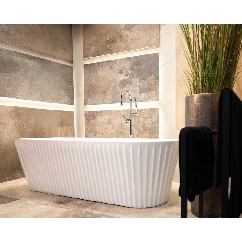 Jej charakterystyczna powierzchnia z delikatnymi pionowymi żłobieniami nadaje jej nowoczesny i artystyczny wygląd, dzięki czemu staje się centralnym punktem każdej łazienki.